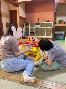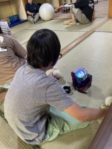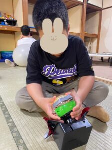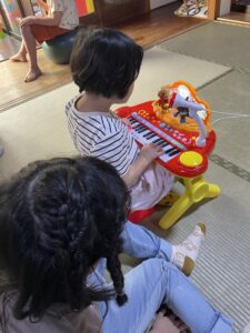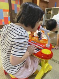 続いては、光って大きな音を流しながら、激しく頭を動かす不思議なおもちゃです👽最初はみんなびっくりしていましたが、慣れると何度も頭をプッシュしながら楽しんでくれていました!