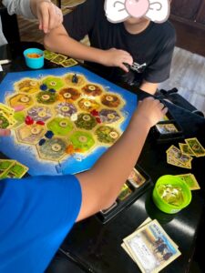 カタンでは色んなルールを考え本来なら10点マッチのところを14点や16点にしたりと子どもたちでルールが壊れないようにルールを改変している様子が見られました😳