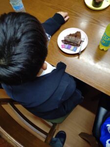 ケーキでは参加児童全員チョコレートケーキを頼んでおり茶色いお誕生日会でした🤣