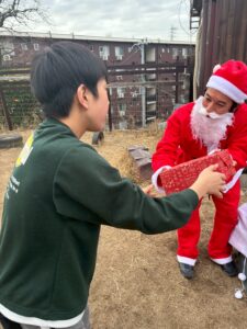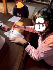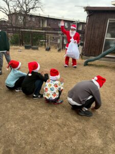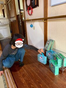 ビンゴゲームが終わり、おやつまでのんびりと過ごしていたところ、今年も良い子で過ごしていた子どもたちにサンタさんが会いにきてくれて、プレゼントも用意してくれていました🎅