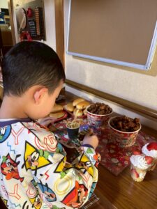 おやつはイベント恒例のビュッフェスタイルで、子ども達も慣れているので、好きなものを選んで食べて、おかわりもしながら楽しむことができました🍗