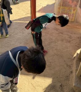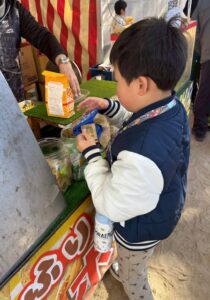 ベビーカステラやシャカシャカポテト、りんご飴など美味しそうなものがありました🤤児童達は自宅から持ってきた財布を取り出して予算内(600円)で屋台を周り、美味しそうに食べていましたよ🤭