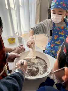 「先生、量確認して下さい!」と児童達は生地の量を確認しながら丁寧に行ってました😌
